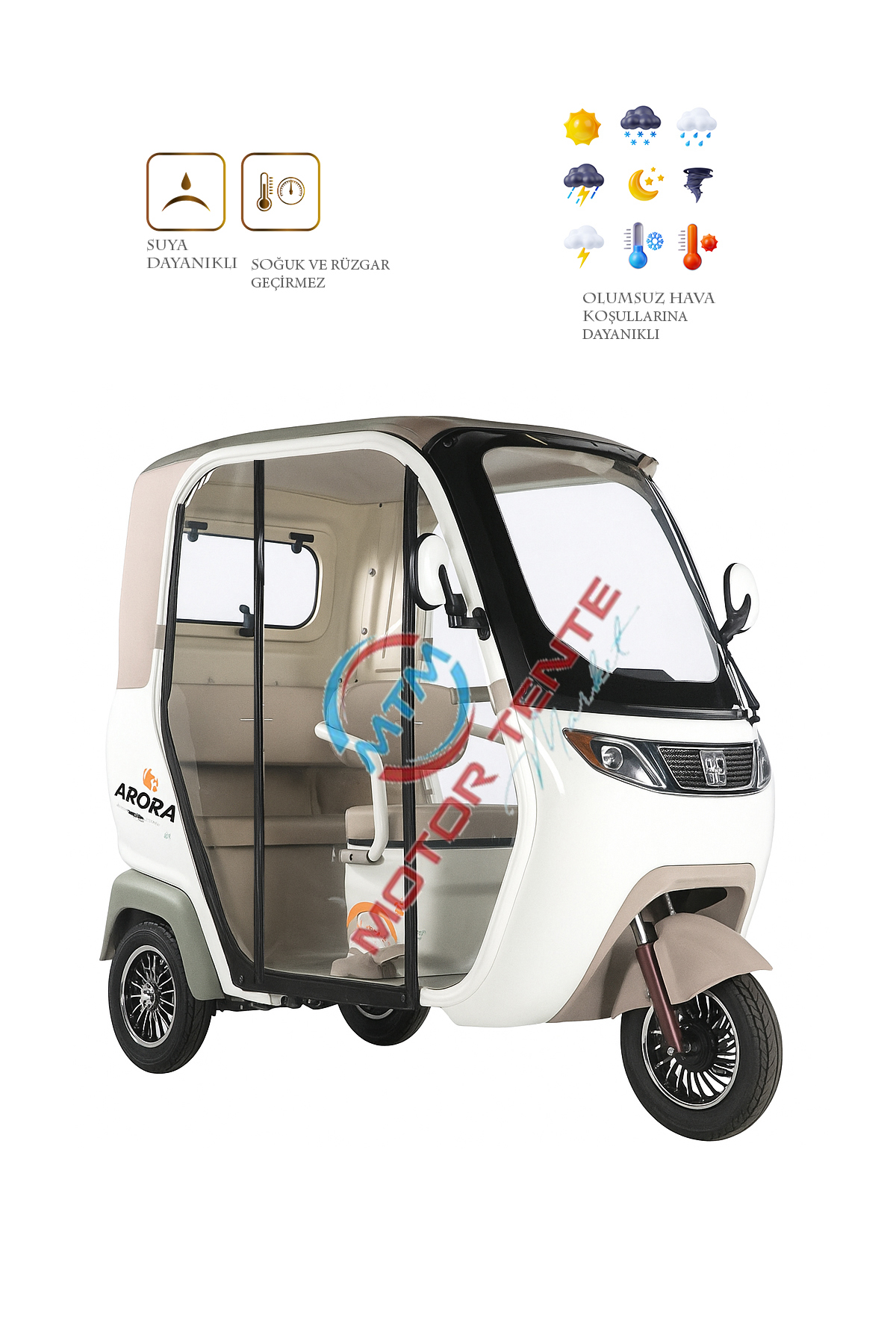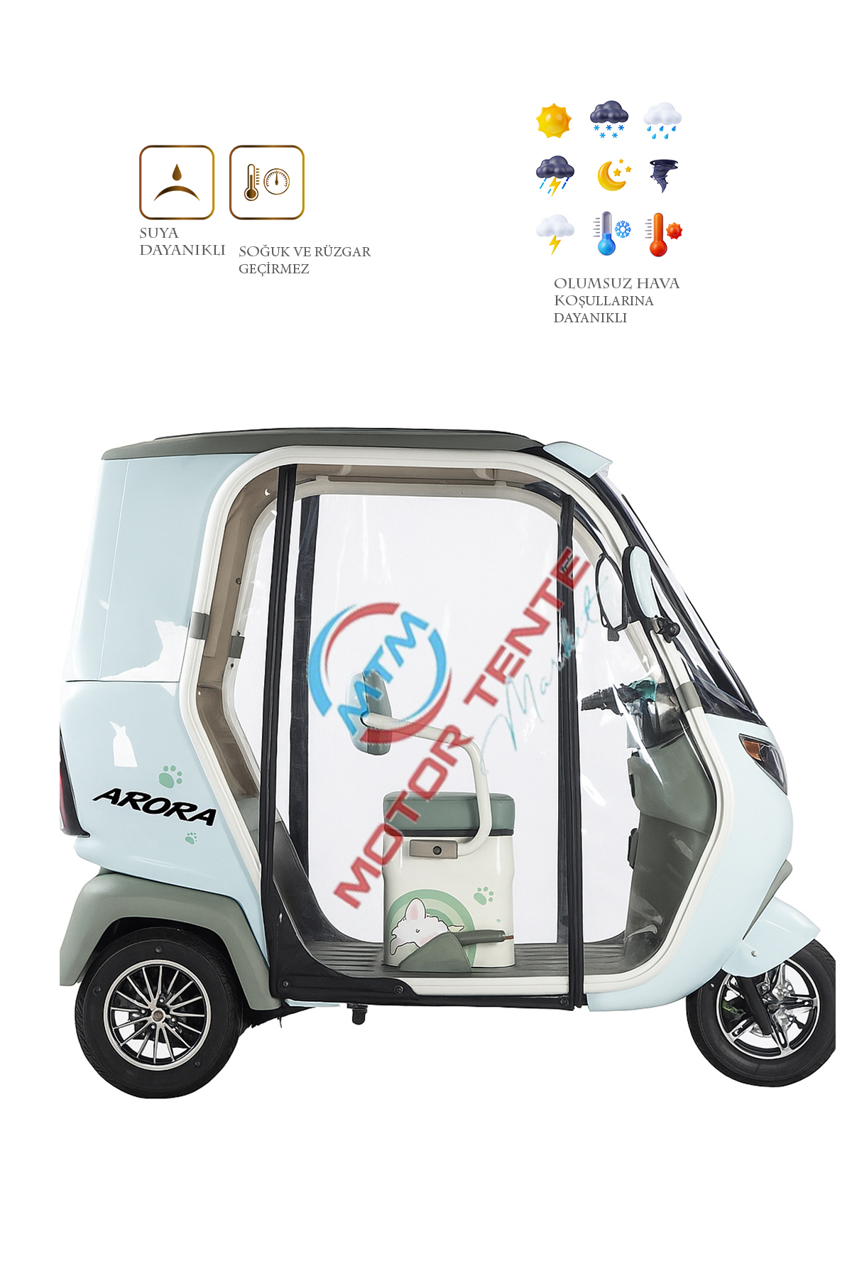 Arora Angel Pro model için üretilen bu branda kabin ile motorunuzu ve kendinizi yağmur, kar, rüzgar gibi dış etkenlerden koruyabilirsiniz.; Ürünümüz arcın yan brandalarını kapsamaktadır. Mevcut olan kasanızın yan taraflarını kapatacak şekilde fermuarlı şekilde üretilmiştir. Birinci sınıf ithal brandadan imal edilmiştir. Kesinlikle yağmur geçirmez ve suya dayanıklıdır. Fermuarları kemik diş olarak tabir edilen piyasadaki en kaliteli fermuardır. Şeffaf brandası su turmaz özelliktedir ve görüş açısını olumsuz etkilemez. Ürünümüz siyah renk brandadır.
