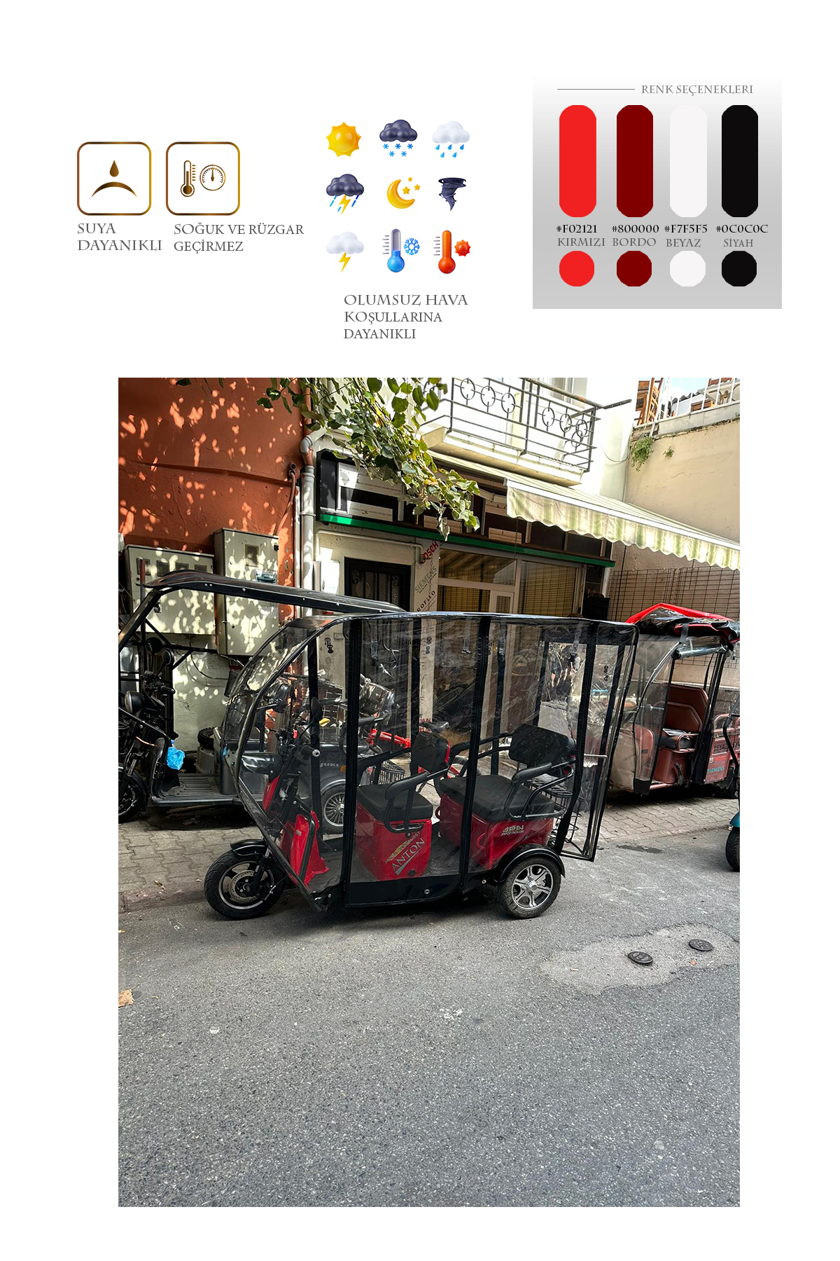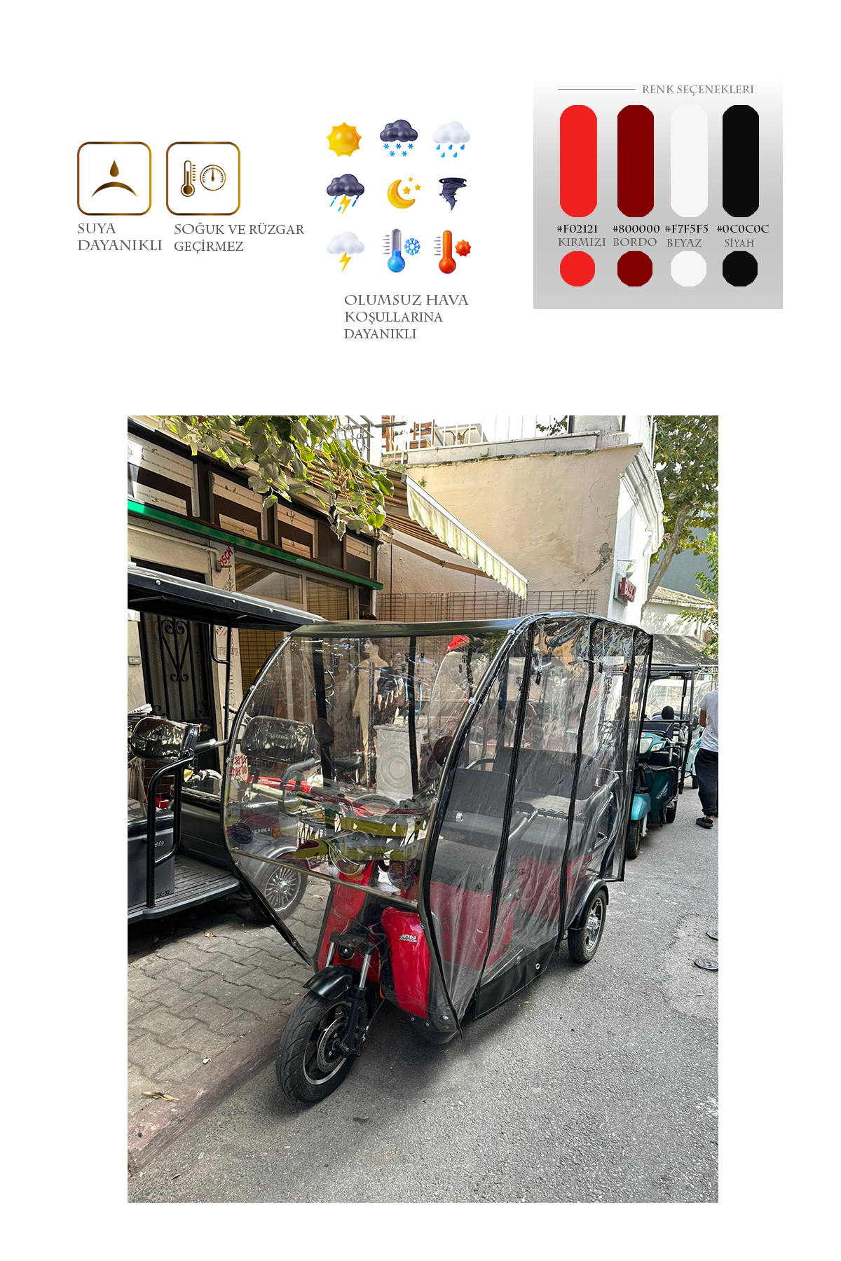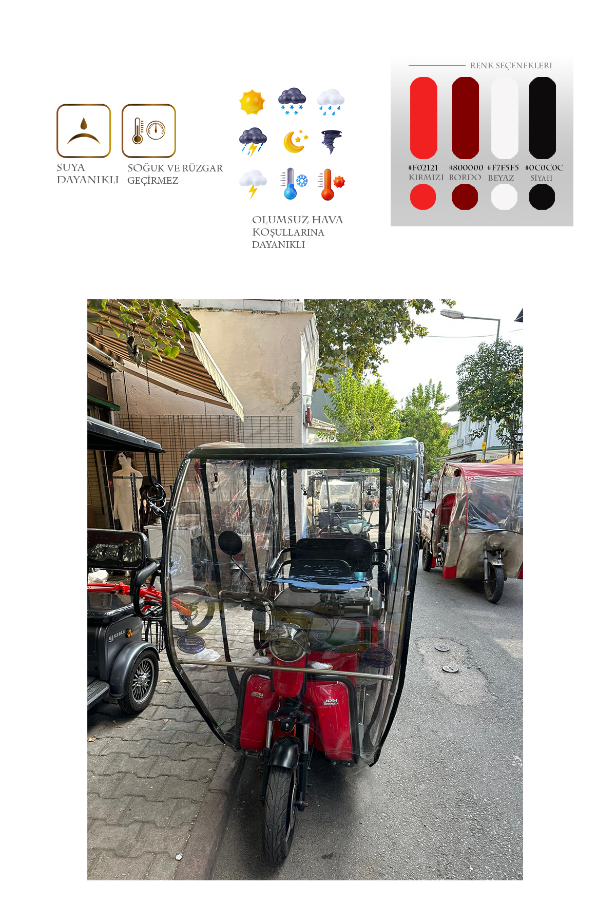 JPN Anton model için üretilen bu branda kabin ile motorunuzu ve kendinizi yağmur, kar, rüzgar gibi dış etkenlerden koruyabilirsiniz. Kurulumu kolay ve demonte bir üründür. Geçme sistem alüminyum kasadan oluşur. Tamamen kuruluma hazır olarak tüm aksesuarları ile gönderilir. 1. sınıf şeffaf Almanyadan ithal branda kullanılmıştır. Kesinlikle yağmur geçirmez ve suya dayanıklıdır. Fermuarları kemik diş olarak tabir edilen piyasadaki en kaliteli fermuardır. Şeffaf brandası su turmaz özelliktedir ve görüş açısını olumsuz etkilemez. Yedek parçaları firmamızda mevcuttur. Yağmurlu ve soğuk kış günlerinde motorunuzu korur ve kışın kullanılamayan aracınızı kullanılabilir kılar. Fermuarlı kapı sistemi sayesinde sıcak havalarda katlanabilme özelliği sayesinde katlayarak yine aktif bir şekilde kullanabilirsiniz.