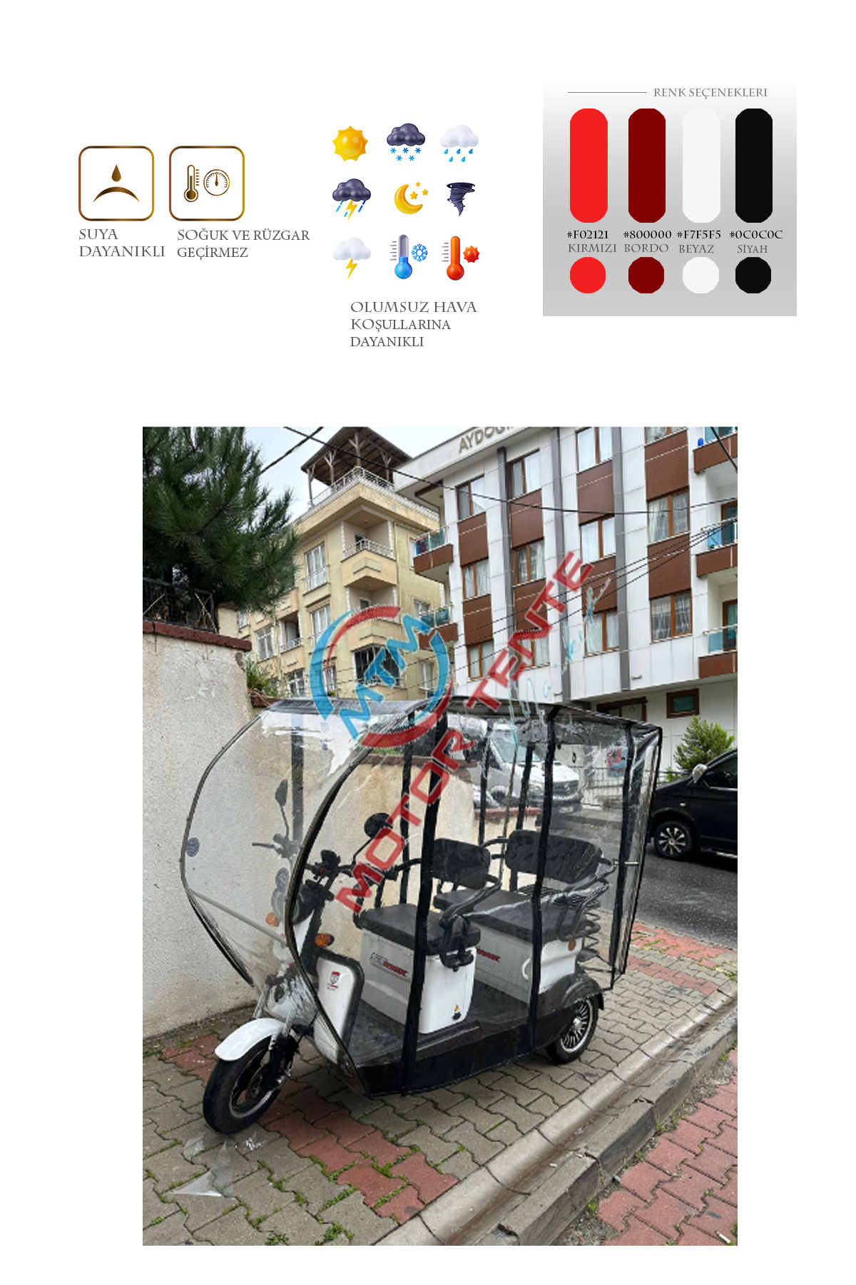 Stmax Elite 960 model için üretilen bu branda kabin ile motorunuzu ve kendinizi yağmur, kar, rüzgar gibi dış etkenlerden koruyabilirsiniz. Kurulumu kolay ve demonte bir üründür. Geçme sistem alüminyum kasadan oluşur. Tamamen kuruluma hazır olarak tüm aksesuarları ile gönderilir. 1. Sınıf şeffaf almanyadan ithal branda kullanılmıştır. Kesinlikle yağmur geçirmez ve suya dayanıklıdır. Fermuarları kemik diş olarak tabir edilen piyasadaki en kaliteli fermuardır. Şeffaf brandası su turmaz özelliktedir ve görüş açısını olumsuz etkilemez. Yedek parçaları firmamızda mevcuttur. Yağmurlu ve soğuk kış günlerinde motorunuzu korur ve kışın kullanılamayan aracınızı kullanılabilir kılar. Fermuarlı kapı sistemi sayesinde sıcak havalarda katlanabilme özelliği sayesinde katlayarak yine aktif bir şekilde kullanabilirsiniz.