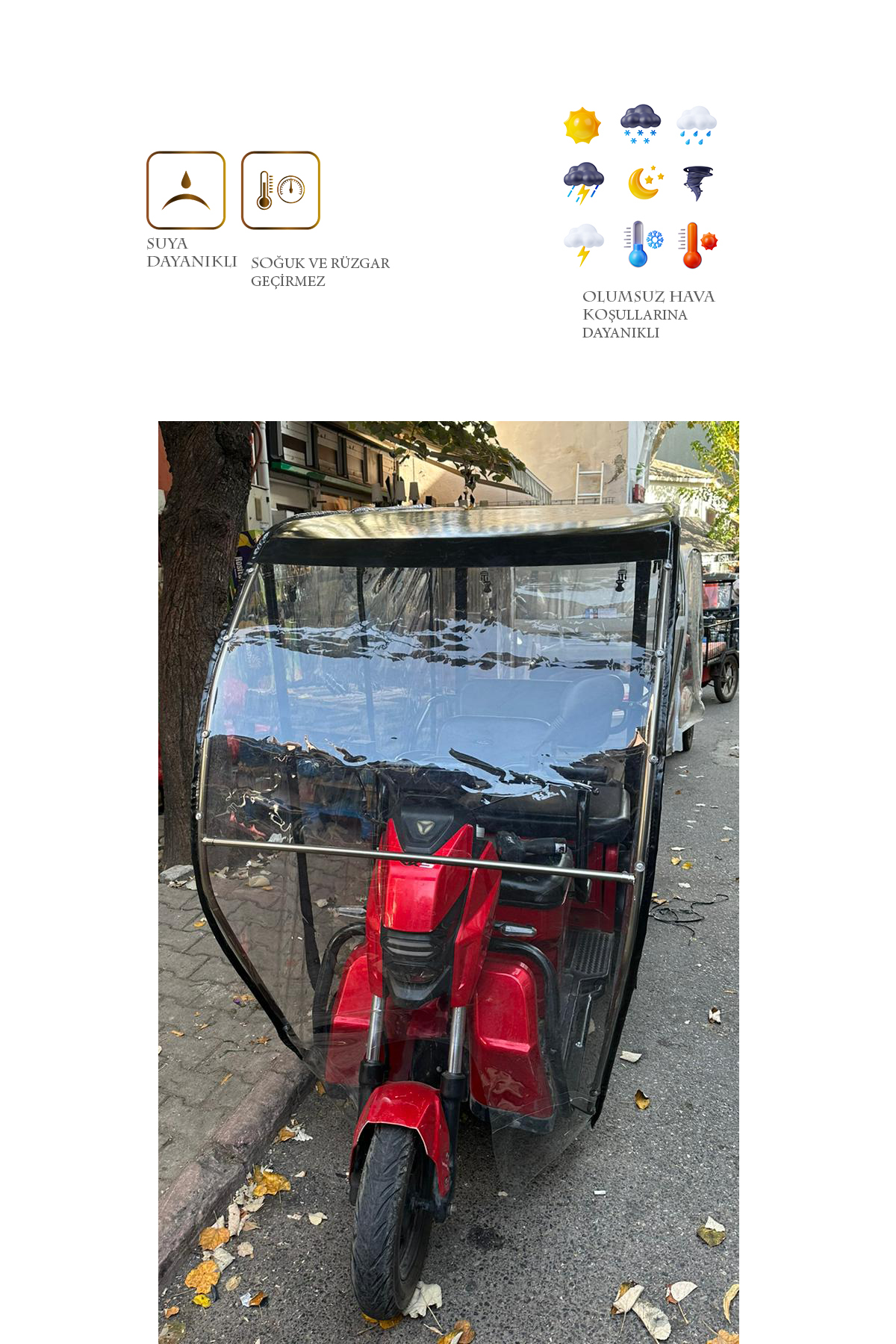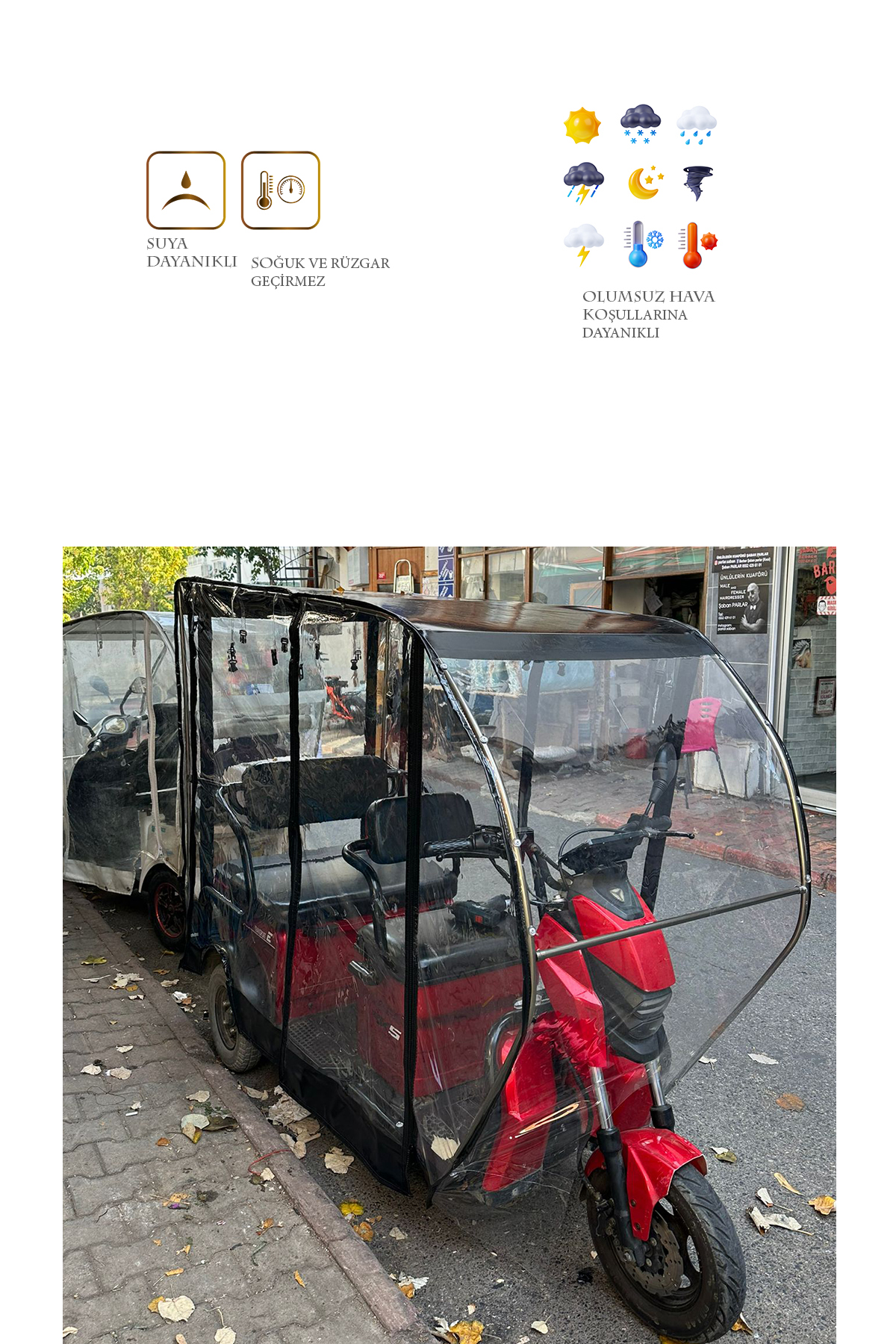 Kuba Rks Optimus model için üretilen bu branda kabin ile motorunuzu ve kendinizi yağmur, kar, rüzgar gibi dış etkenlerden koruyabilirsiniz. Kurulumu kolay ve demonte bir üründür. Geçme sistem alüminyum kasadan oluşur. Tamamen kuruluma hazır olarak tüm aksesuarları ile gönderilir. 1. sınıf şeffaf Almanyadan ithal branda kullanılmıştır. Kesinlikle yağmur geçirmez ve suya dayanıklıdır. Fermuarları kemik diş olarak tabir edilen piyasadaki en kaliteli fermuardır. Şeffaf brandası su turmaz özelliktedir ve görüş açısını olumsuz etkilemez. Yedek parçaları firmamızda mevcuttur. Yağmurlu ve soğuk kış günlerinde motorunuzu korur ve kışın kullanılamayan aracınızı kullanılabilir kılar. Fermuarlı kapı sistemi sayesinde sıcak havalarda katlanabilme özelliği sayesinde katlayarak yine aktif bir şekilde kullanabilirsiniz.