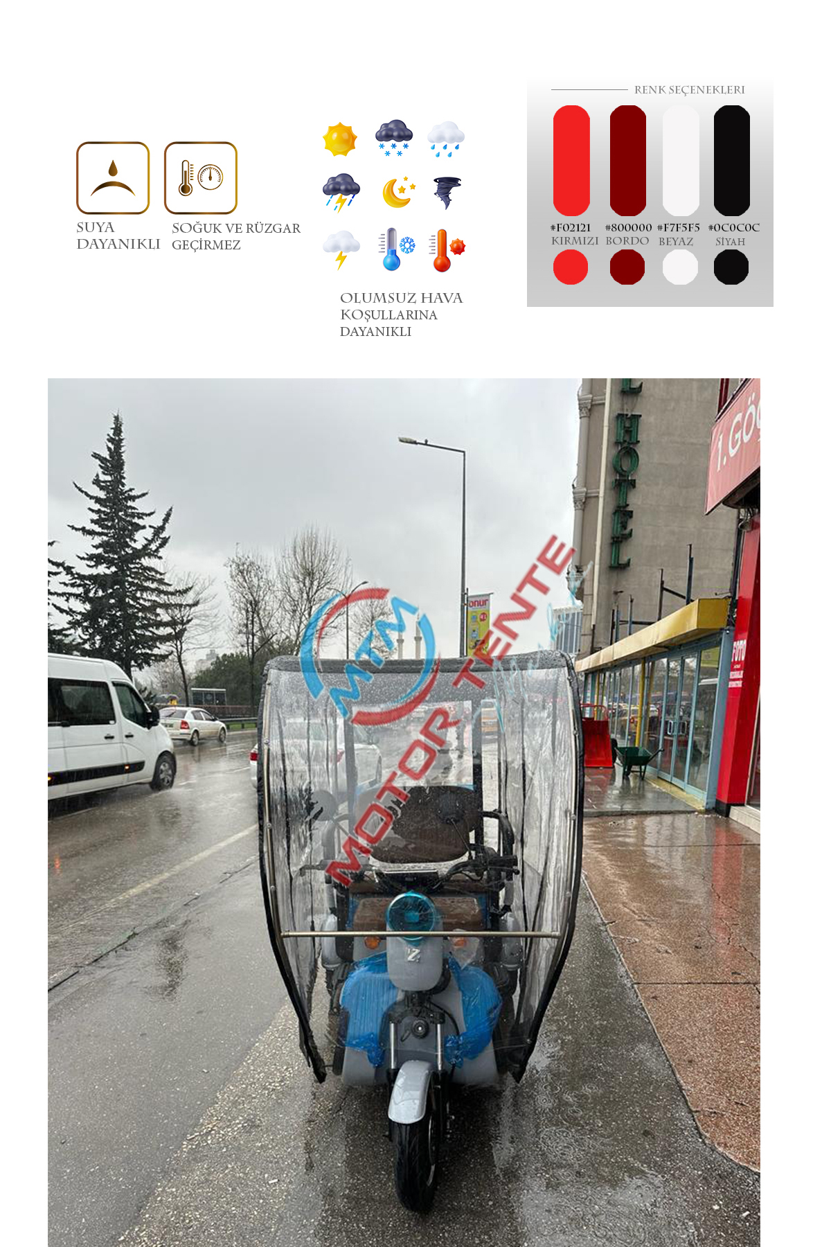 Zlin Troya model için üretilen bu branda kabin ile motorunuzu ve kendinizi yağmur, kar, rüzgar gibi dış etkenlerden koruyabilirsiniz. Kurulumu kolay ve demonte bir üründür. Geçme sistem alüminyum kasadan oluşur. Tamamen kuruluma hazır olarak tüm aksesuarları ile gönderilir. 1. sınıf şeffaf Almanyadan ithal branda kullanılmıştır. Kesinlikle yağmur geçirmez ve suya dayanıklıdır. Fermuarları kemik diş olarak tabir edilen piyasadaki en kaliteli fermuardır. Şeffaf brandası su turmaz özelliktedir ve görüş açısını olumsuz etkilemez. Yedek parçaları firmamızda mevcuttur. Yağmurlu ve soğuk kış günlerinde motorunuzu korur ve kışın kullanılamayan aracınızı kullanılabilir kılar. Fermuarlı kapı sistemi sayesinde sıcak havalarda katlanabilme özelliği sayesinde katlayarak yine aktif bir şekilde kullanabilirsiniz.