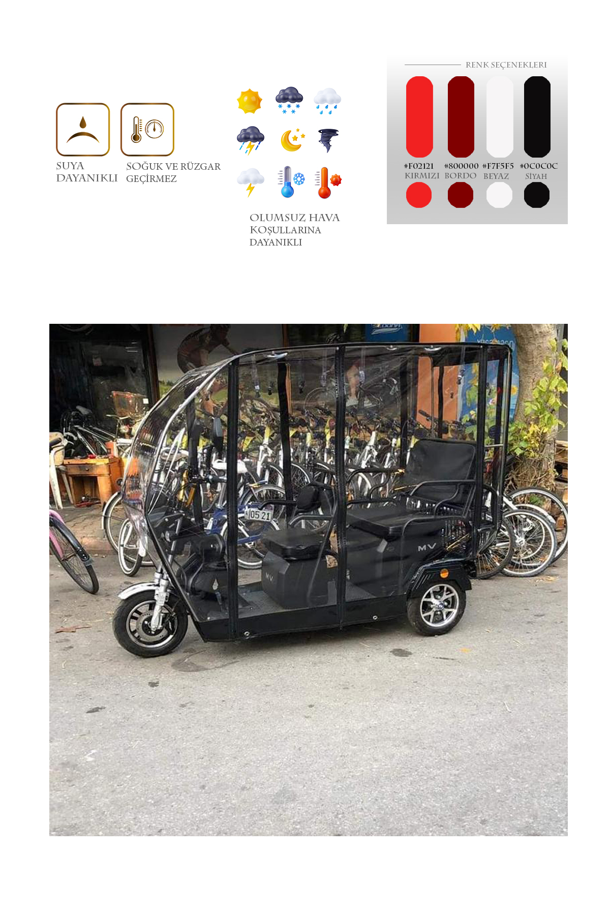 Kral Boss model için üretilen bu branda kabin ile motorunuzu ve kendinizi yağmur, kar, rüzgar gibi dış etkenlerden koruyabilirsiniz. Kurulumu kolay ve demonte bir üründür. Geçme sistem alüminyum kasadan oluşur. Tamamen kuruluma hazır olarak tüm aksesuarları ile gönderilir. 1. sınıf şeffaf Almanyadan ithal branda kullanılmıştır. Kesinlikle yağmur geçirmez ve suya dayanıklıdır. Fermuarları kemik diş olarak tabir edilen piyasadaki en kaliteli fermuardır. Şeffaf brandası su turmaz özelliktedir ve görüş açısını olumsuz etkilemez. Yedek parçaları firmamızda mevcuttur. Yağmurlu ve soğuk kış günlerinde motorunuzu korur ve kışın kullanılamayan aracınızı kullanılabilir kılar. Fermuarlı kapı sistemi sayesinde sıcak havalarda katlanabilme özelliği sayesinde katlayarak yine aktif bir şekilde kullanabilirsiniz.