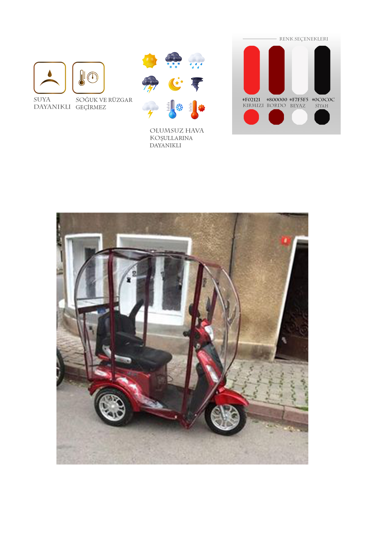Yuki model için üretilen bu branda kabin ile motorunuzu ve kendinizi yağmur, kar, rüzgar gibi dış etkenlerden koruyabilirsiniz. Kurulumu kolay ve demonte bir üründür. Geçme sistem alüminyum kasadan oluşur. Tamamen kuruluma hazır olarak tüm aksesuarları ile gönderilir. 1. sınıf şeffaf Almanyadan ithal branda kullanılmıştır. Kesinlikle yağmur geçirmez ve suya dayanıklıdır. Fermuarları kemik diş olarak tabir edilen piyasadaki en kaliteli fermuardır. Şeffaf brandası su turmaz özelliktedir ve görüş açısını olumsuz etkilemez. Yedek parçaları firmamızda mevcuttur. Yağmurlu ve soğuk kış günlerinde motorunuzu korur ve kışın kullanılamayan aracınızı kullanılabilir kılar. Fermuarlı kapı sistemi sayesinde sıcak havalarda katlanabilme özelliği sayesinde katlayarak yine aktif bir şekilde kullanabilirsiniz.